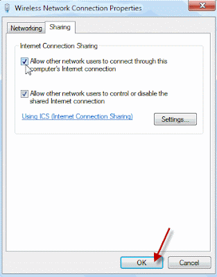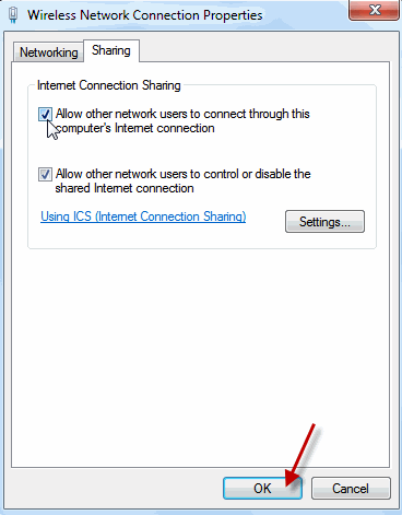 Your Ad Hoc network has been established and you are capable of transferring and sharing files. But if you want to share your internet connection with other wireless devices then go to the host’s wireless adapter icon and right click on it. Then go to “properties” and subsequently to the “Sharing” tab and select “Allow other network users to connect through this computer’s Internet connection“.