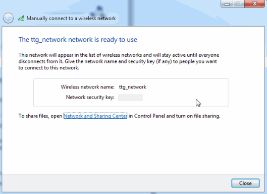 The window that appears next requires you to give a network name, security type and the security key. If you wish to use this Ad Hoc network over and over again then check the“Save Network” option. The security type will depend on what the wireless adapter is capable of. In general cases it is found that if you’re only using it quickly with different types of devices it’s easier to have no security. On the other hand if you are keeping it on for full-time use, you’ll definitely want to use security.